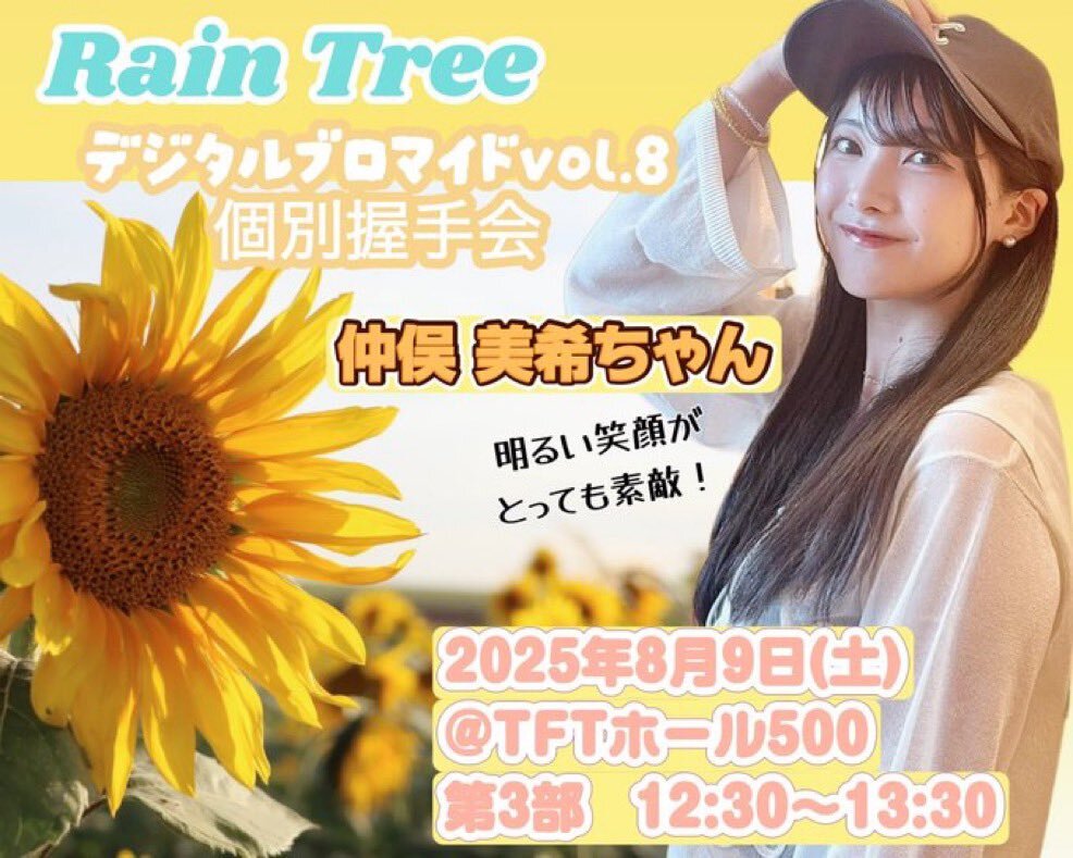仲俣美希さん⛑️⭐ 個別握手会100人突破できますように🍀.*・゚ ☀️仲良しの「仲」🌙 🌻なかまたみき、みっきー、なかみき🌻 ペンライトカラー:黄色🍋✕オレンジ🍊 #RainTree #仲俣美希 #元気予報 #みきふぉれ x.com/nakamata_miki/…